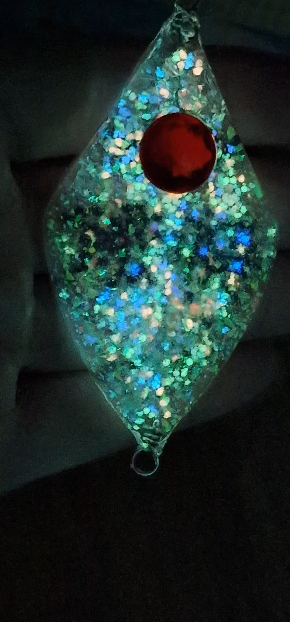 Glow in the dark blänken laddas med solljus eller lampa , uv lampa är bäst ju längre man lyser på det desto längre lyser det, den synliga effekten avtar ganska fort, men den lågstrålande sitter i en stund som med alla glowbeten .